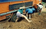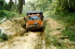 On this stretch of road we got our first taste of digging the truck out of mud instead of sand. It has only taken a couple of seconds to bury the back axle down to the ground.